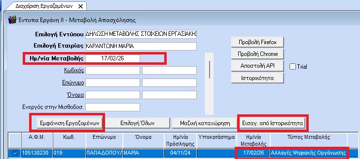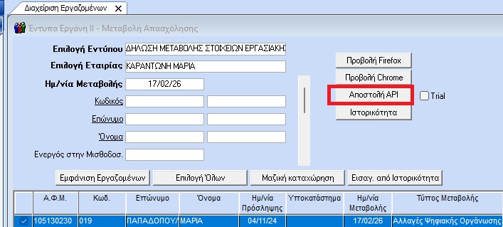 Τελ. Ενημέρωση: 17/02/26, 09:55 | ΕΡΓΑΝΗ ΙΙ, Μεταβολή Στοιχείων