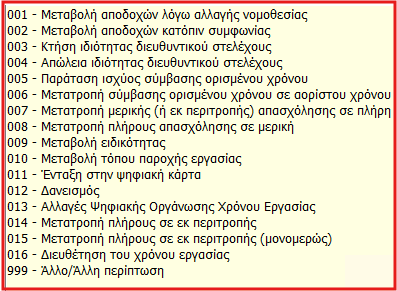 - Σημείωση: Αφορούν τις λήξεις εργασίας λόγω μεταβίβασης σε άλλη επιχείρηση οι οποίες υποβάλλονται από την αρχική εταιρία, ώστε ο εργαζόμενος να μην εμφανίζεται πλέον στην τρέχουσα κατάσταση