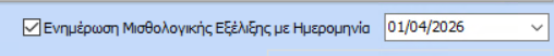 *Προσοχή! Σε περίπτωση που ο χρήστης επιθυμεί να εκτελέσει «Έλεγχος Νόμιμου Μισθού» σε ημερομηνία διαφορετική από την ημερομηνία συστήματος (δηλαδή πριν τις 1 Απριλίου 2026) θα πρέπει να ενεργοποιηθεί η παράμετρος εταιριών «Έλεγχος Νόμ. Μισθού Με Ημ. Χρήστη» και στο κουμπί «Ημ. Ελέγχου Νόμιμου Μισθού» να οριστεί η ημερομηνία ελέγχου.