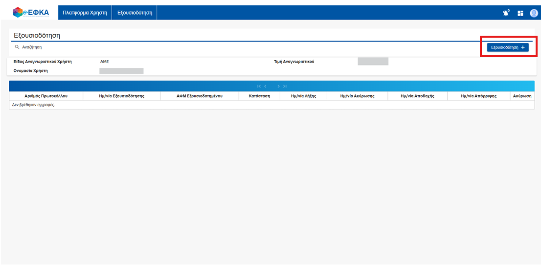 Επιλέγετε Εξουσιοδοτήσεις και στην συνέχεια το κουμπί Προσθήκη Εξουσιοδότησης.