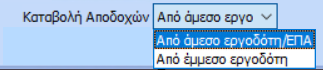 - Το πεδίο «Καταβολή Αποδοχών», με τις τιμές Από άμεσο εργοδότη/ΕΠΑ ή Από έμμεσο Εργοδότη.