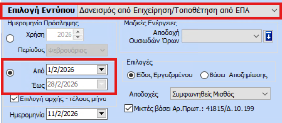 - Το είδος Πρόσληψη για Δανεισμό, στο πεδίο «Έναρξη Εργασίας»