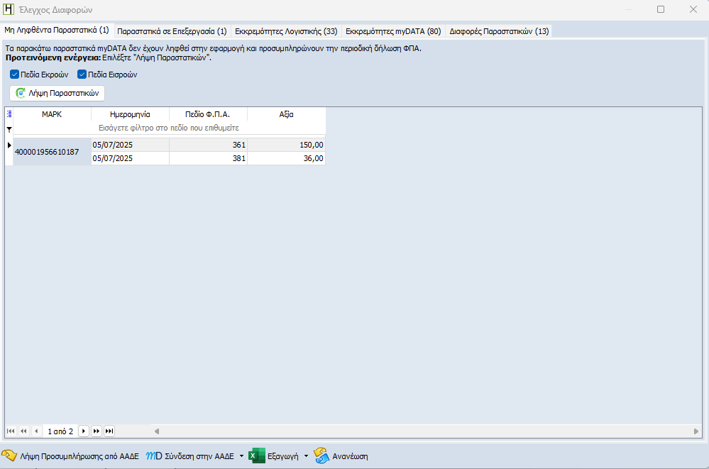 Εκκρεμότητες myDATA