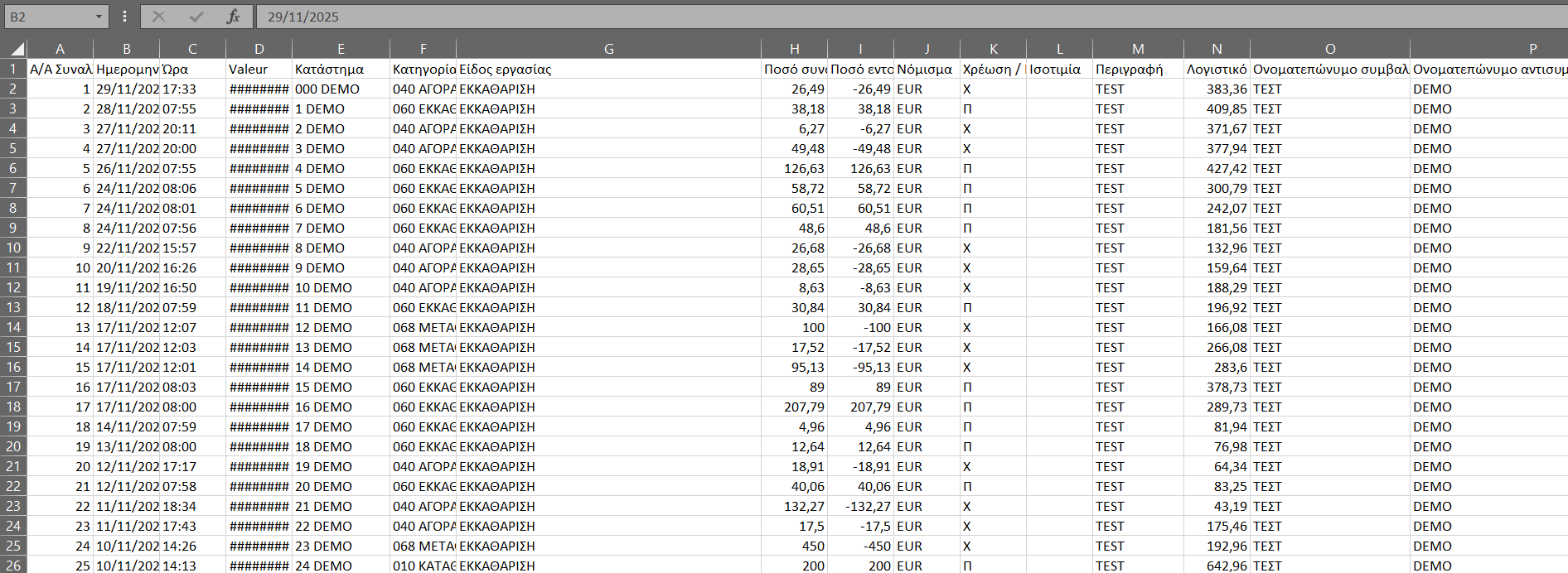 Το αρχείο πρέπει να είναι μορφής xlsx, ενδεικτικό δείγμα: