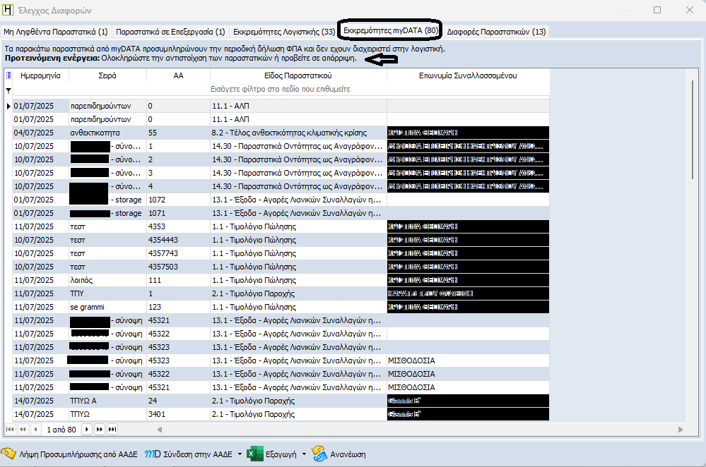 Εκκρεμότητες myDATA