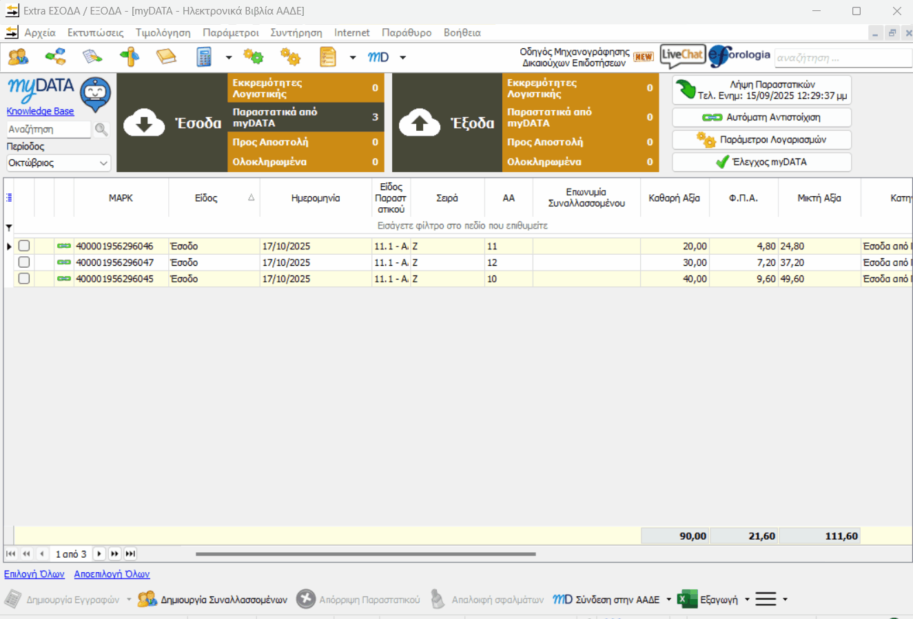Τελ. Ενημέρωση: 17/10/25, 09:05 | myDATA, Έσοδα