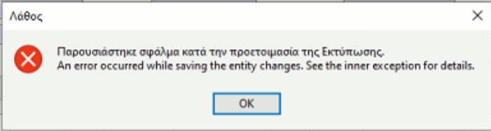 Μήνυμα Σφάλματος: An error occurred while saving the entity changes. See the inner exception for details.