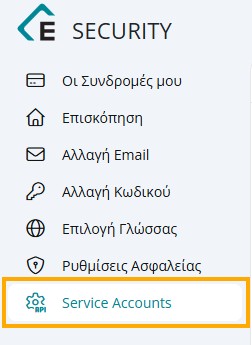 Έπειτα από το μενού αριστερά επιλέγετε το Service Accounts.