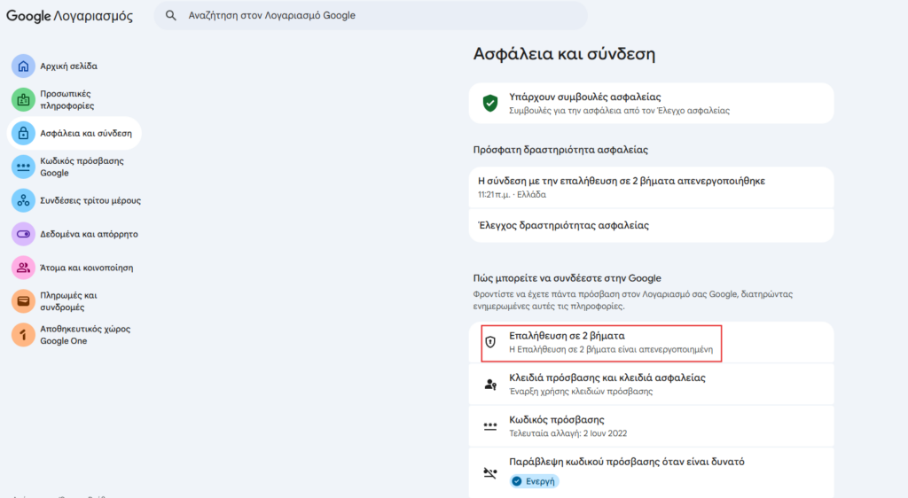 - Μεταβείτε στη σελίδα https://myaccount.google.com/security