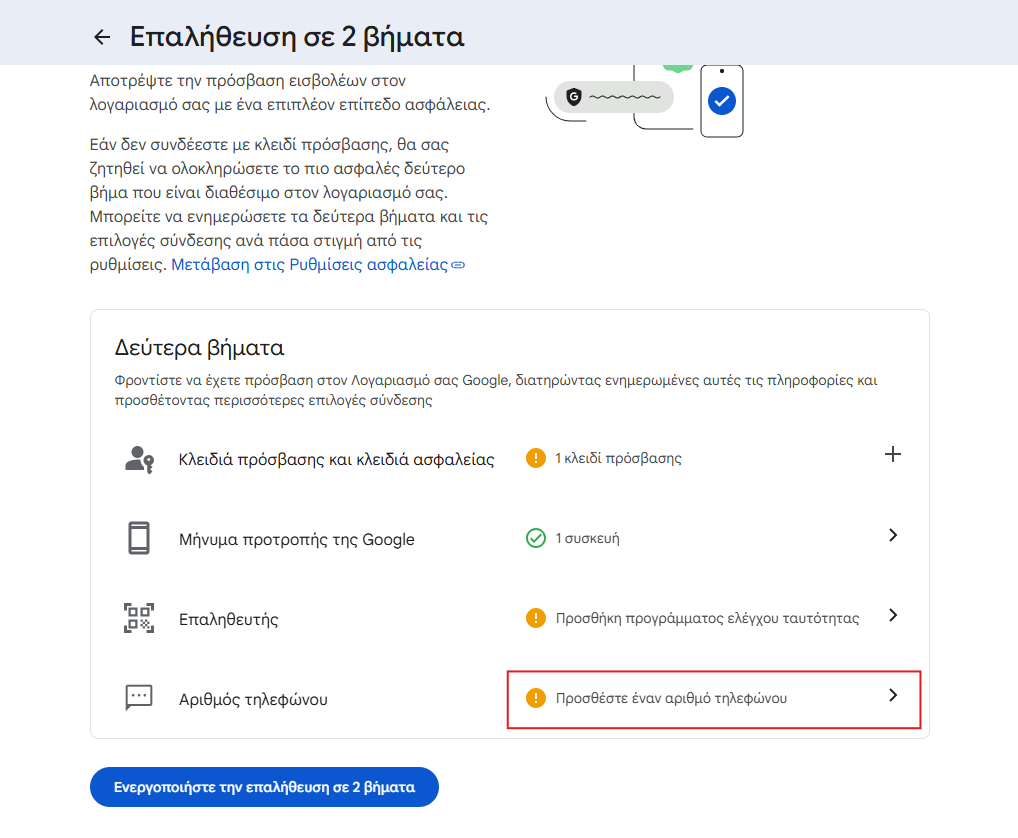 - Τέλος ενεργοποιήστε την επαλήθευση σε 2 βήματα.