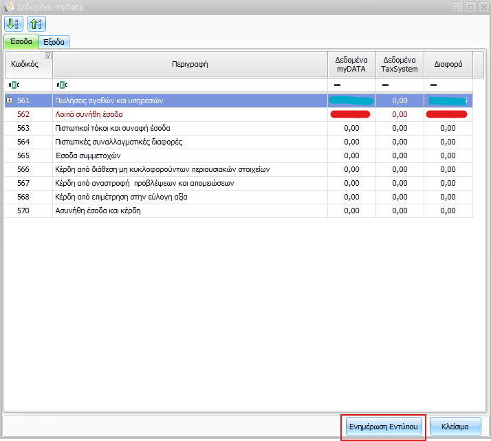 Με το κουμπί «Ενημέρωση Εντύπου»: