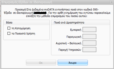 - Εάν εντοπιστούν ποσά στους κωδικούς 595,596,597, εμφανίζεται πίνακας όπου επιλέγετε: