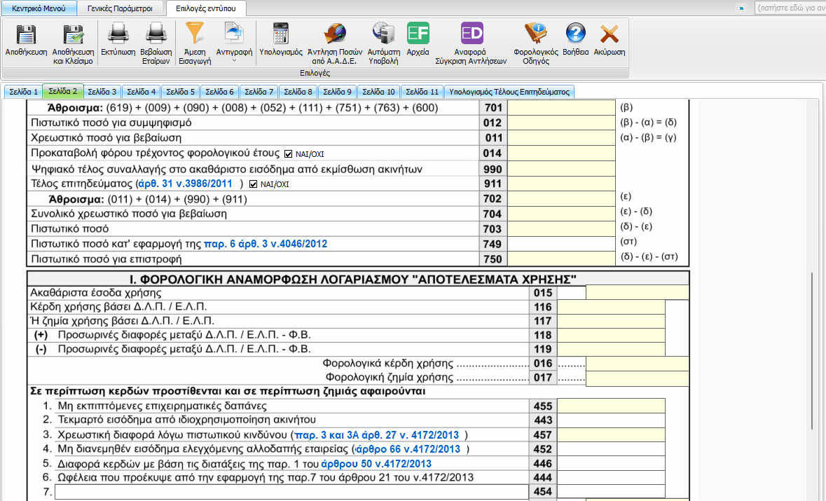 - Καταχωρήστε τα υπόλοιπα δεδομένα του εντύπου και πατήστε «Υπολογισμός».